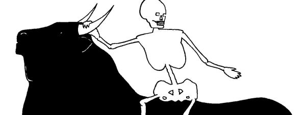 Das erste Motiv bezieht sich jeweils auf die griechische Mythologie, in welcher der Stier den Gott Zeus verkörpert. Das andere zeigt Szenen des spanischen (und damit für den Stier tödlich endenden) Stierkampfes. Ausgehend von der derzeitigen (desolaten) Situation in Europa wird mal Europa als Skelett gezeigt, mal ist der Knochenmann der Torero.