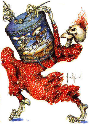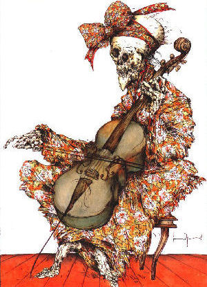 Gertrude Degenhardt, geboren 1940 in New York, aufgewachsen in Berlin, lebt und arbeitet in Mainz. Ihre ersten Totentanz-Zeichnungen entstanden in den 1960er Jahren. Ihr makabres Hauptwerk ist zweifelsohne "Vagabondage ad mortem", entstanden 1995 an der irischen Westküste, als Buch veröffentlicht im gleichen Jahr.