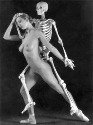 nackte und damit ungeschützte Menschen dem Knochenmann. Die Reduktion