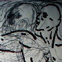 ”Den Atem tauschen” Radierung, dem Buch ”Ingeborg Bachmann, Anrufung des großen Bären” beigelegt. 2005, ca. 20 x 17 cm