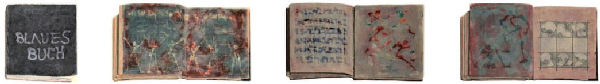 BLAUES BUCH, 42 Seiten Acryl auf Leinwand, handgenäht, 14,5 x 12 cm.