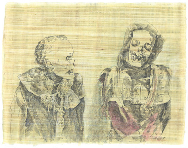Die Alten II. Zeichnung auf Papyrus, 2005.