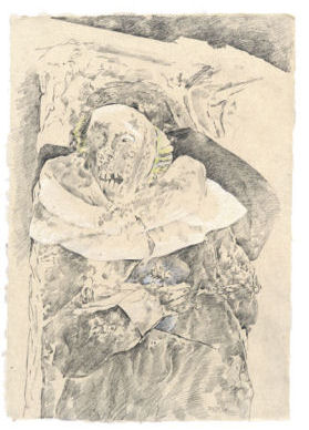 2005 besucht er wiederholt Palermo und die Kapuzienergrüfte. Er beginnt sich mit dem Thema "Mumien" und "Totentanz" auseinanderzusetzen. Es folgen Reisen nach Vác/Ungarn und eine zeichnerische Auseinandersetzung mit den dortigen Mumienfunden.