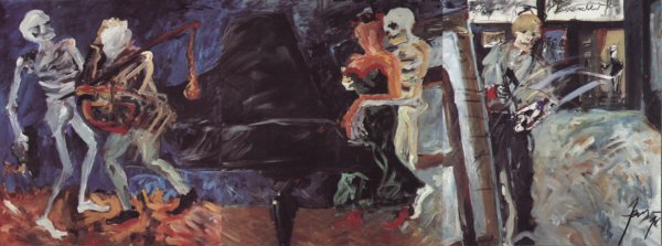 Der kleine Grazer Totentanz. Öl und Acryl, 1994.