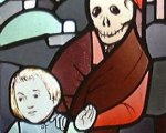 Münster: Glasmalerei von Eduard von Rodt nach Niklaus Manuels Totentanz,