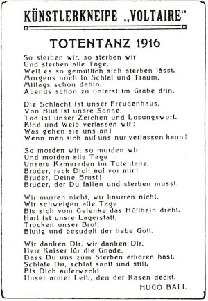 Hugo Ball: Totentanz, Lied, 1916.