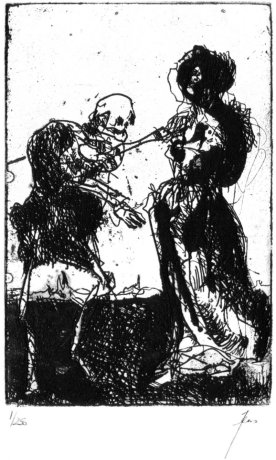 Herwig Zens: Tod und Mädchen, 2004, Radierung im Format 10 x