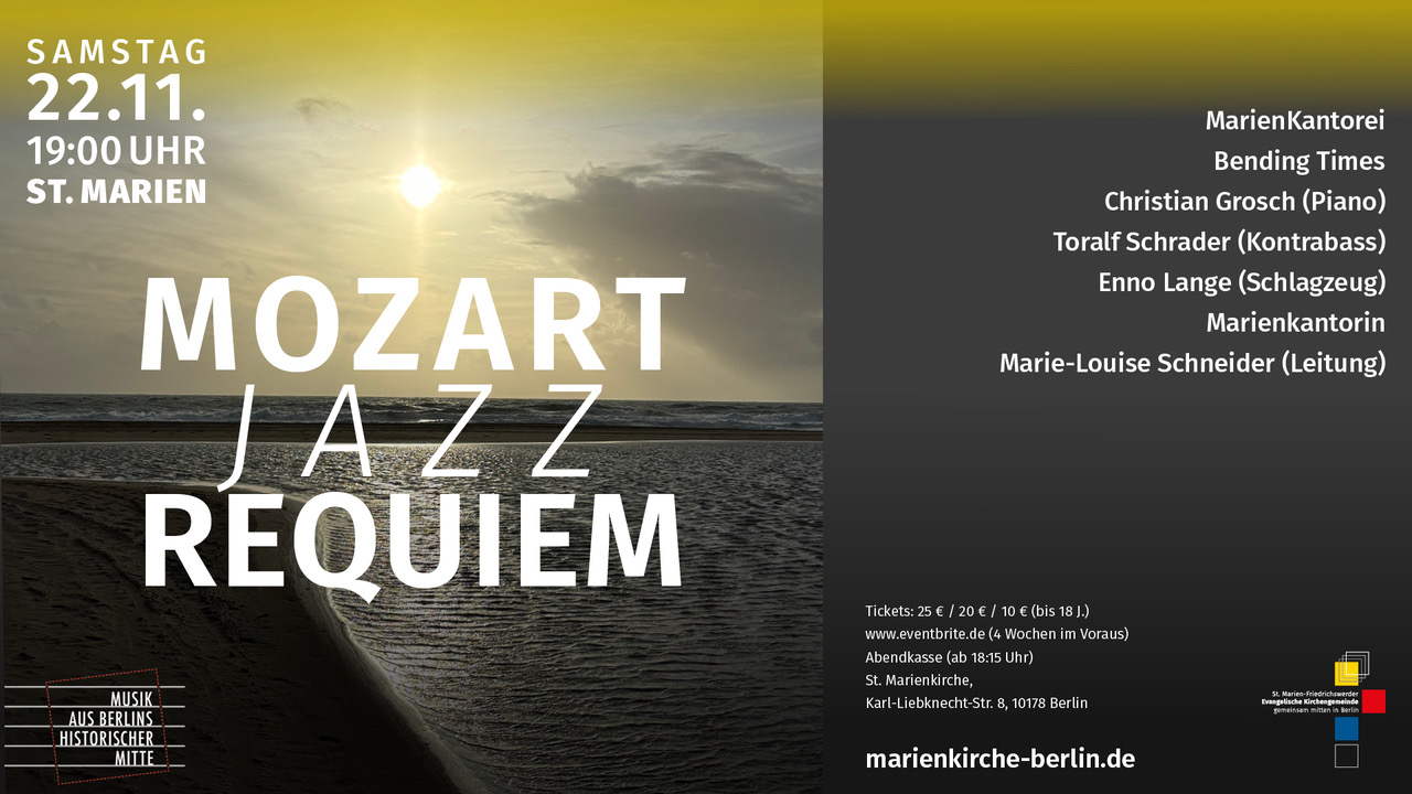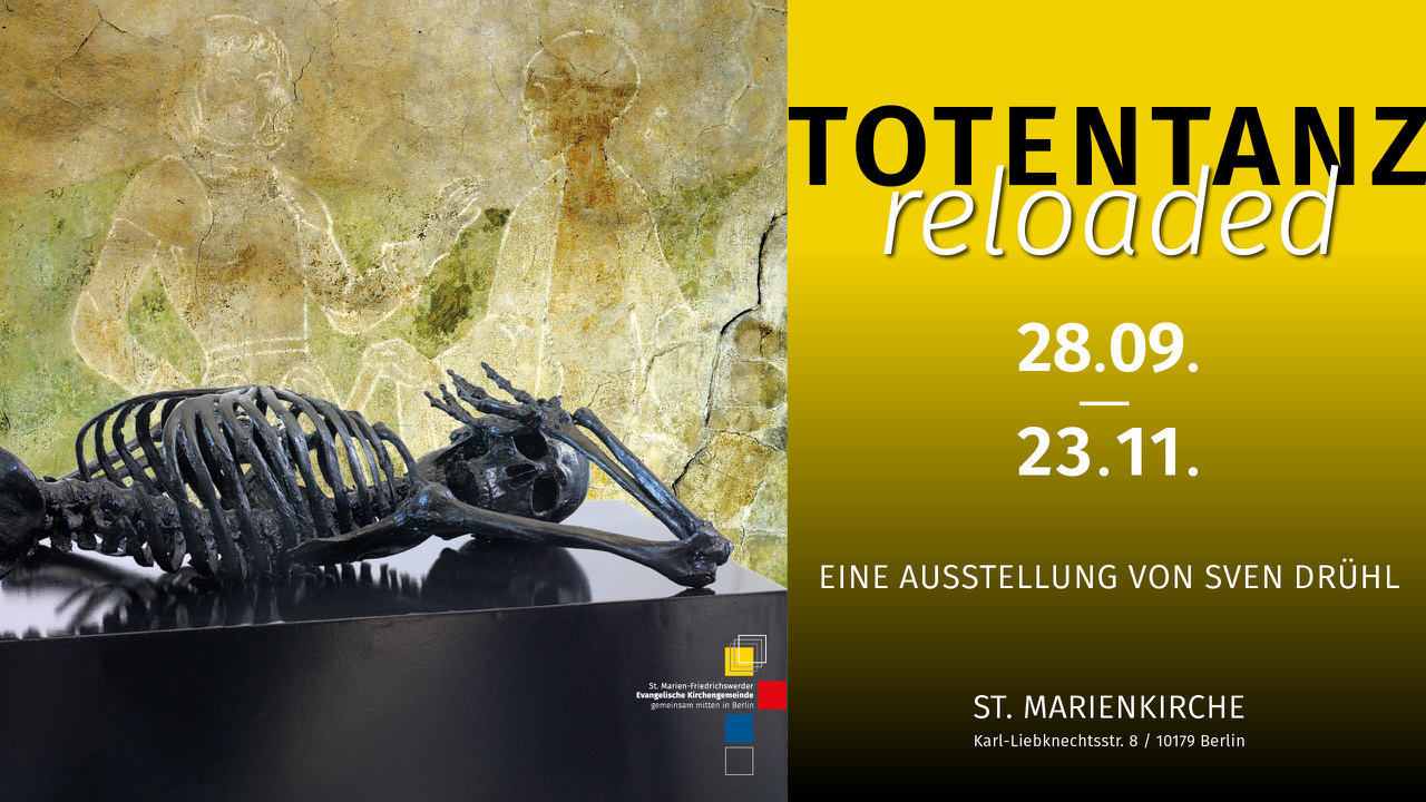 Mehr Infos unter: Zum Künstlerprofil: Angela Eberhard Website der Künstlerin: FIGURENWERK - Atelier für figürliche Plastik Finissage der Austellung "Time Transformations" - Rubica von StrengLöwenpalais, Kunststiftung Starke, Berlin Am Sonntag, dem 9. November 2025, endet die Ausstellung "Time Transformations" der Künstlerin Rubica von Streng im Löwenpalais der Kunststiftung Starke Zur Finissage, die um 14 Uhr beginnt (Ende: 18 Uhr), möchten wir Sie ganz herzlich einladen. Während der Finissage haben Sie Gelegenheit, die Künstlerin persönlich Wie schon zur Eröffnung, wird es auch zur Finissage ein musikalisches Highlight geben: Wir bitten um Anmeldung. Der Eintritt ist frei. Website: https://www.stiftungstarke.de WAS KOSTET DER TOD?vom 26. September 2025 bis 15. März 2026 Ausstellung im Museum für Sepulkralkultur in Kassel Mehr Infos unter: TOTENTANZ reloadedvom 28.09. bis 23.11.2025 Ausstellung von Sven Drühl in der St. Marienkirche in Berlin Mehr Infos unter: Mozart-Jazz-RequiemSamstag, 22.11.2025 / 19:00 Uhr Konzert: Wolfgang Amadeus Mozart / Christian Grosch: "Mozart-Jazz-Requiem" Mehr Infos unter: ES BLEIBT NICHTS ZU SAGENEine musikalische Neuinterpretation des Füssener Totentanzes